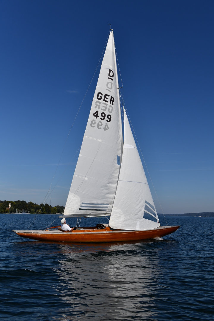 Baujahr: 1927 (2020 komplett neu aufgebaut durch Markus Glas GmbH), neuer Messbrief 2020 | Abmessungen: 10,50m x 2,20m x 1,20m mit 2.430kg Gewicht – Langkieler mit optimiertem Ruderdesign