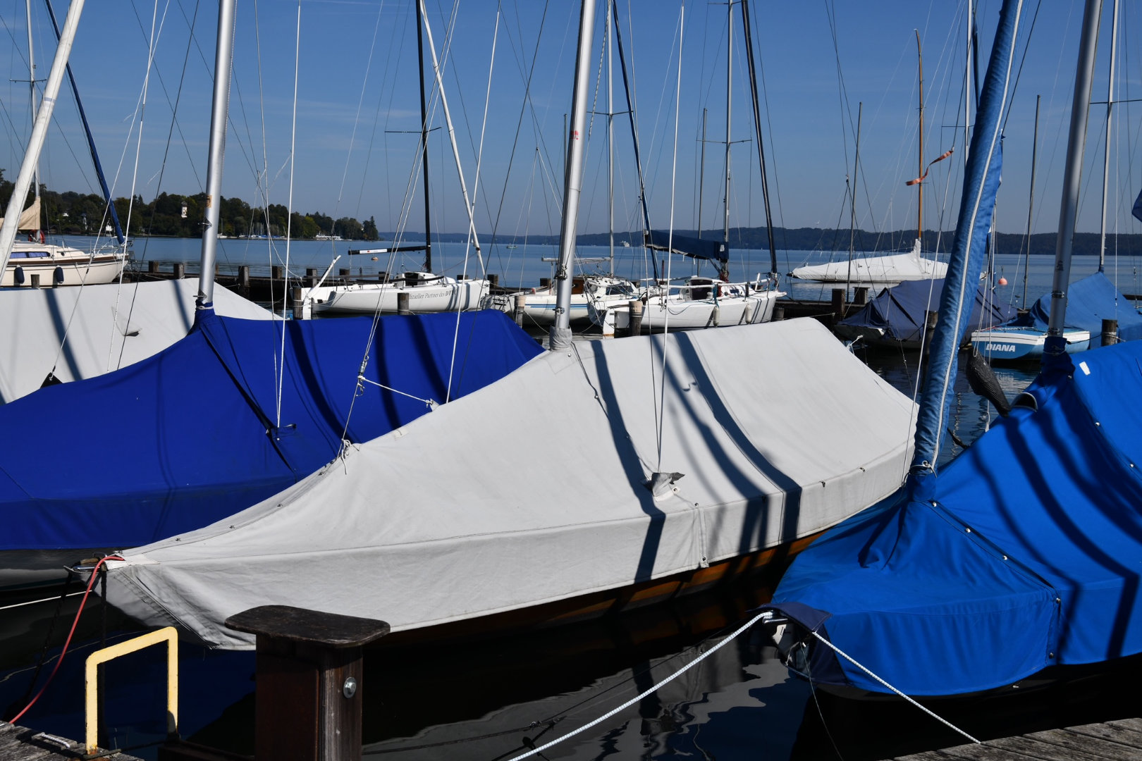 Zubehör: 2 Genuas, 1 Groß, 2 Spinnaker, 1 Ganzpersenning, 1 Transportpersenning, 1 Cockpitpersenning, Anker, original Badeleiter, Dreibein, Alutrailer Kufer mit zwei Boxen (100 km/h zugelassen), Beschläge komplett von Bootswerft Glas optimiert, 2 Stegfender (eckig), Heißgeschirr, segelfertig, 2 Polster für Achterdeck-Liegewiese, sehr guter Zustand, werftgepflegt, Liegeplatz Starnberger See
