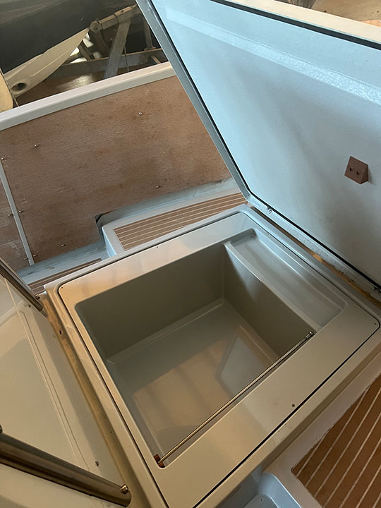 Interieur/Exterieur: beige Polster für Kajüte (5) und Cockpit (3 + Süllboard), Klapptisch für Cockpit und Kajüte, Flaggstock mit Halterung, 4-stufige Prasolux Badeleiter customized für STB
