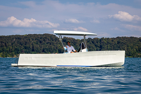 Motor/Batterie: Torqeedo Deep Blue Motor 60kW samt Torqeedo Lithium-Batterie 38kWh (i3)